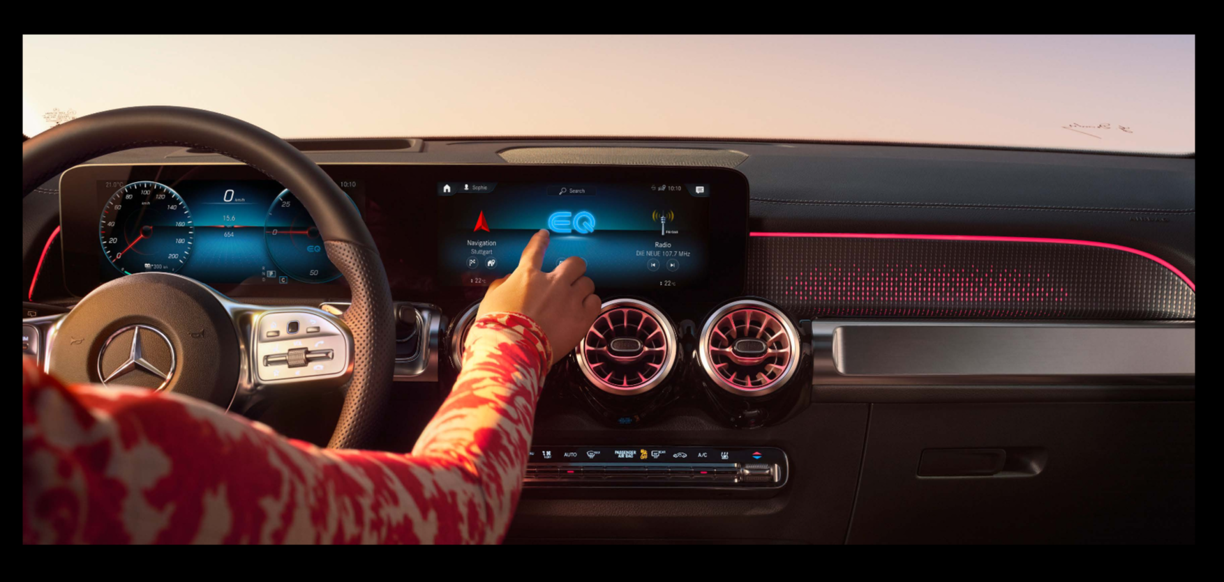 자연스러운 대화로 직관적인 음성 명령이 가능한 MBUX가 탑재됩니다. 또한 필요 전력 상황은 0%부터 100%까지 보이며 하단 가장자리에 에너지 상황이 표시됩니다.