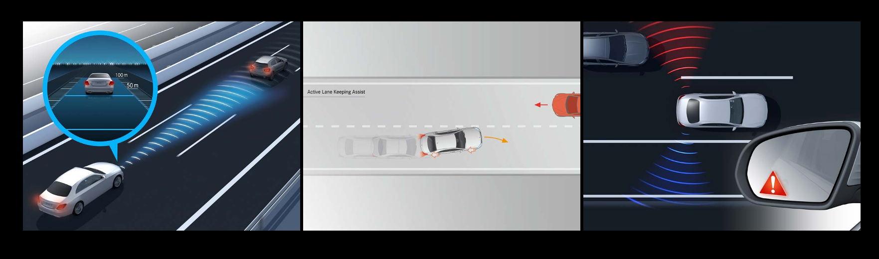 드라이빙 어시스턴스 패키지와 함께 카메라, 레이더 및 초음파 등 주변을 기록하는 다양한 센서가 차량에 장착되며 각각의 정보는 서로 지능적으로 연계되어있어 필요한 시점에 적절하게 발휘됩니다.
