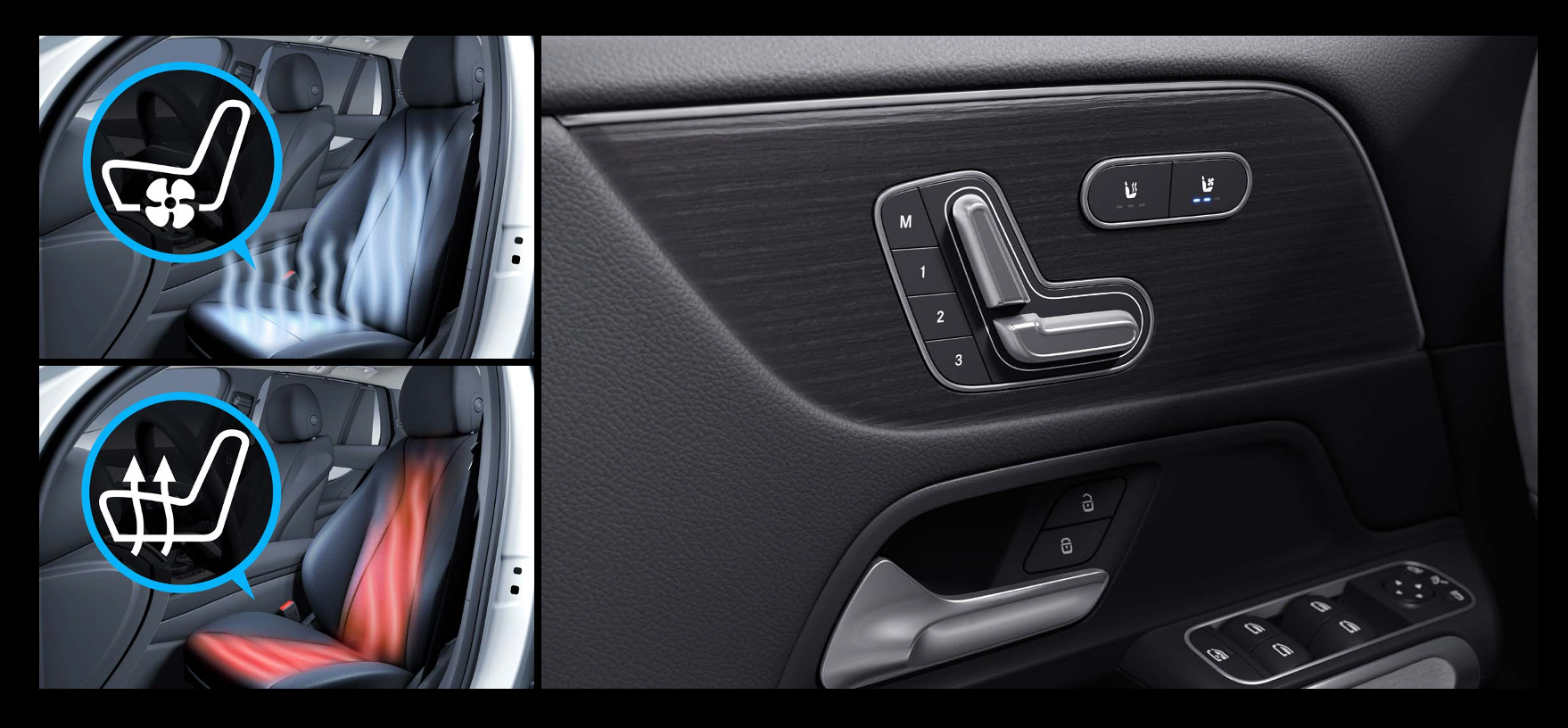 AMG Line 모델은 앞좌석 열선 및 통풍 시트가 있습니다.