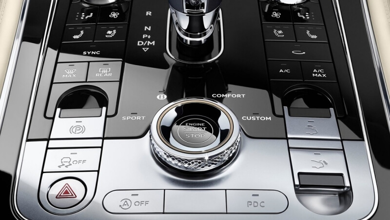 컨티넨탈 GT는 기어노브에 차량 시동버튼과 비상등이 있습니다. 비상등의 위치도 손을 들지않고도 손가락만 가져다 댈 수 있을 정도의 가깝고 편하게 위치했습니다.